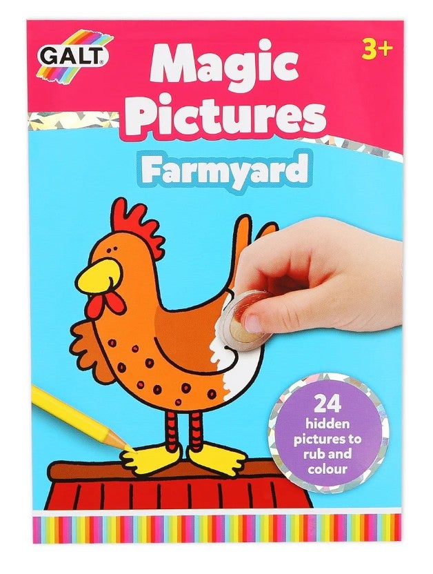 Aivan tavalliselta piirustuslehtiöltä näyttävä vihko ei ole ollenkaan sitä miltä näyttää, vaan siinä on taikaa! Kun raaputtaa kolikolla valkoisia sivuja, paljastuu esiin maatila-aiheisia kuvia. Jännitystä riittää, sillä koskaan ei voi tietää millainen kuva raaputtamalla paljastuu. Raaputtamisen jälkeen kuvat on helppo värittää. Taikalehtiössä on 24 kuvaa, ja sen parissa aika kuluu nopeasti. Mainio lahjaidea, vaikka myös yhdessä värikynien kanssa. Iloiseen ja kehittävään puuhailuun!