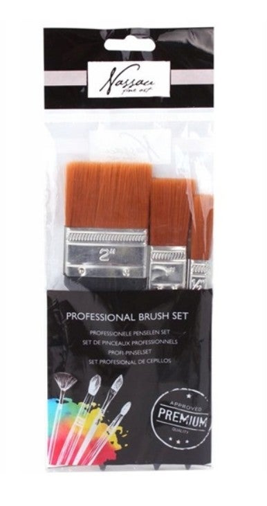 Kolmen nylon-siveltimen setti. Sopii mm. akryyli- ja öljymaaleille, sekä lakkojen ja liimojen levitykseen.